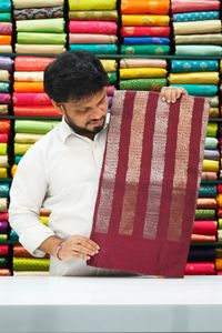 Russian Satin Crepe Silk Zari Weaving Wine Maroon Saree