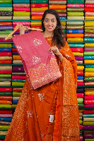 Russian Silk Bandini Print And Embroidery Work Onion Pink Saree