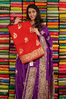 Russian Silk Gold Zari And Butti Red Saree