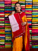 Russian Silk Scallop Border And Work White With Red Saree