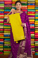Semi Banarasi Georgette Gold Zari Butti Lemon Yellow Saree