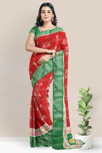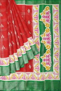 Semi Chanderi Silk Checks Red And Green Saree