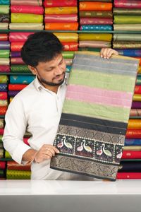 Semi Dola Silk Doriya Weaving Zari Border Multi Colour With Black Saree