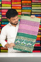 Semi Dola Silk Doriya Weaving Zari Border Multi Colour With Dark Green Saree