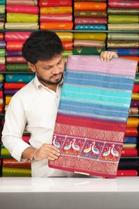 Semi Dola Silk Doriya Weaving Zari Border Multi Colour With Dark Pink Saree