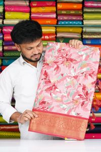 Semi Dola Silk Floral Foil Print Light Peach Saree