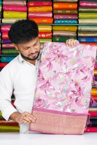 Semi Dola Silk Floral Foil Print Magenta Pink Saree