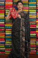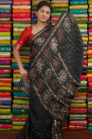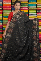 Semi Mangalagiri Silk Checks Black And Red Saree