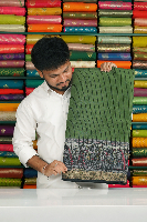 Semi Mangalagiri Silk Checks Madhubani Print Green With Purple Saree
