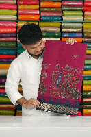 Semi Mangalagiri Silk Printed Pattern Magenta Pink With Navy Blue Saree