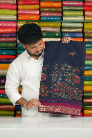 Semi Mangalagiri Silk Printed Pattern Navy Blue With Magenta Pink Saree
