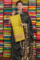 Semi Mangalagiri Silk Zari Checks Yellow Saree