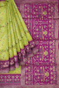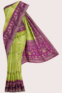 Semi Soft Ikkath Silks And Floral Design Mehandi Green With Magenta Pink Saree