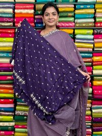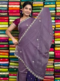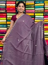 Shimmer Chiffon Checks With Pals Scallop Border Light And Dark Purple Saree