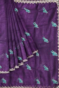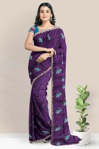 Shimmer Chiffon Embroidery Work Purple Mix Brinjal With Blue Saree