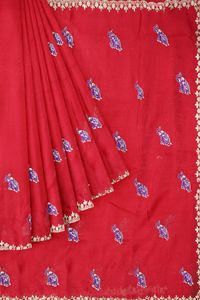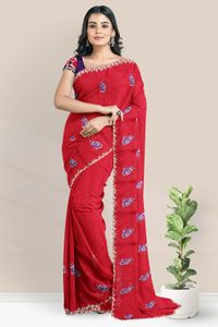 Shimmer Chiffon Embroidery Work Red With Purple Saree