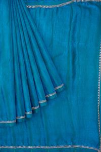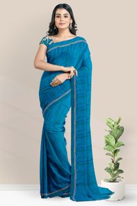 Shimmer Georgette And Scallop Zari Border Blue And Green Mix Saree