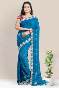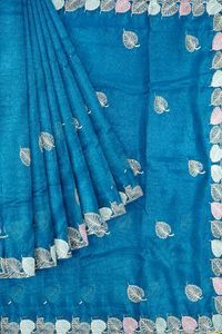 Shimmer Georgette And Zari Weaving Leaf Butti Coppersulphate Blue With Pink Saree