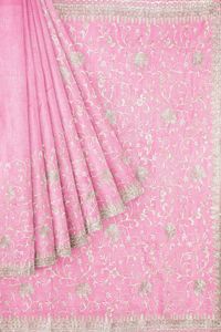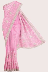 Shimmer Georgette Full Jaal Design Baby Pink Saree