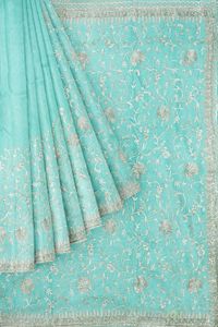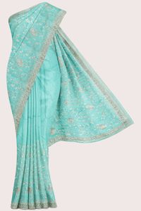 Shimmer Georgette Full Jaal Design Sea Green Saree