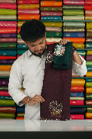 Shimmer Georgette Galaxy Stone Scallop Border Dark Wine With Green Saree