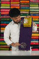 Shimmer Georgette Galaxy Stone Scallop Border Purple With Golden Yellow Saree