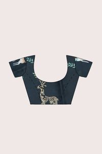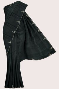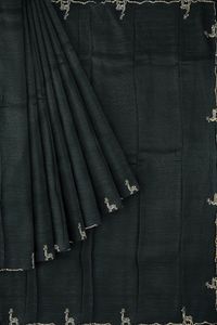 Shimmer Georgette Scallop Border Deer Design Black Saree