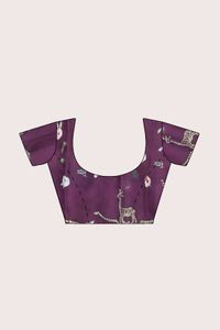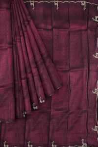 Shimmer Georgette Scallop Border Deer Design Dark Maroon Saree