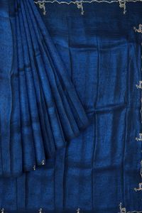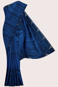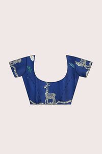 Shimmer Georgette Scallop Border Deer Design Peacock Blue Saree