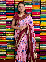 Shiny Crepe Digital Print With Banarasi Butta Pestal Pink With Old Mauve Saree
