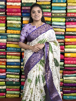 Silk Kota Digital Myka Print Cream And Purple Saree