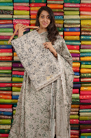 Silk Kota Floral Digital Print Cream With Light Grey Saree