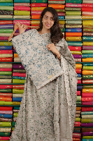 Silk Kota Floral Digital Print Cream With Light Peacock Green Saree