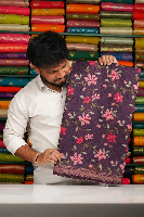 Silk Kota Floral Digital Print With Mirror Work Dark Brinjal Saree