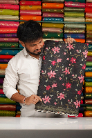 Silk Kota Floral Digital Print With Mirror Work Grayish Black Saree