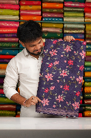 Silk Kota Floral Digital Print With Mirror Work Purple Saree