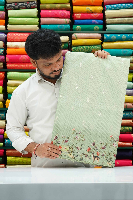 Silk Kota Mango Weaving Butti With Threading And Sequence Work Green Saree