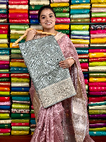 Silk Kota Print With Zari Border Light Greenish Gray Saree