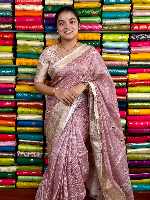 Silk Kota Print With Zari Border Light Onion Pink And Cream Saree