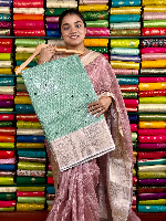 Silk Kota Print With Zari Border Light Sea Green Saree