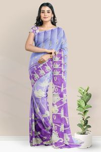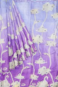 Silk Kota Tie And Die And Mirror Design Lavender With Dark Brinjal Saree