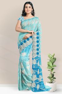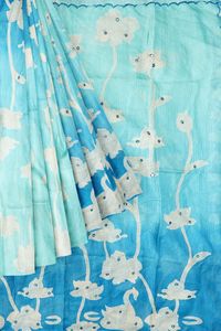 Silk Kota Tie And Die And Mirror Design Sky Blue With Coppersulphate Blue Saree