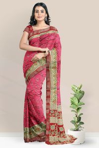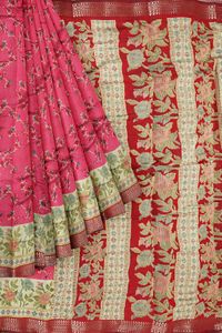 Soft Semi Chanderi Silk And Floral Design Pink With Dark Maroon Saree