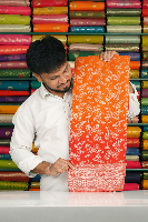 Soft Banaras Georgette Full Jal Tie And Die Orange With Red Saree