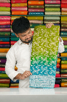 Soft Banaras Georgette Full Jal Tie And Die Parrot Green With Blue Saree