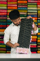Soft Banarasi Georgette Gold Zari Strips Black With Light Baby Pink Saree