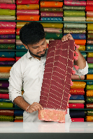 Soft Banarasi Georgette Gold Zari Strips Dark Maroon With Peach Pink Saree