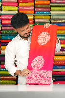 Soft Benarasi Georgette Tie And Die Mango Design Peach With Magenta Pink Saree