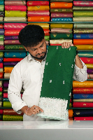 Soft Benarasi Silver Zari Meenakari Butti Dark Green With Teal Green Saree