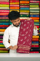 Soft Benny Crepe Doriya Weaving Leaf Print Bright Magenta Pink Saree